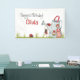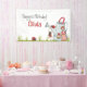 Niedliches, mädchenhaftes und personalisiert fröhliches 1. Geburtstagsbanner mit einem bezaubernden Ladybug, der auf einer Schaukel sitzt und von einer bezaubernden Gartenkanape hängt. Zwei weitere Ladybugs schließen sich dieser skurrilen und zauberhaften Party-Szene an. Personalisieren Sie dieses schöne Geburtstagsbanner mit Mädchenname und passen Sie den Gruß nach Bedarf an.