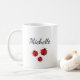 Whimsical personalisierte Kaffee-Tasse, mit einer niedlichen handgezeichneten Ladybugs Illustration Design auf einem weißen Hintergrund. Mit niedlichen Schriftzeichen mit weißer Schrift können Sie mit Ihrem eigenen Text personalisieren. Eine tolle Möglichkeit, eine Touch der Natur zu Ihrem Lieblingsgetränk hinzuzufügen.