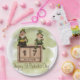 Im Whimsical Design stehen zwei Kobobolonnen, die auf dem Kalender-Würfel für den 17. März gekrönt sind, mit moosgrünem Aquarell-Hintergrund und anpassbarem "Happy St. Patrick's Day"-Text in handgeschriebenem braunem Schriftart.