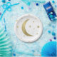 Whimsical Light Blue & Gold Moon Stars Baby Dusche Pappteller
