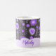 Whimsical lila graues Herz und Blume Blumenname Kaffeetasse