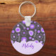 Whimsical lila graues Herz und Blume Blumenname Schlüsselanhänger