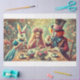Erleben Sie eine Welt der reinen Fantasie mit dieser zarten Szene von Wonderlands berühmtester Ansammlung. Swirbelnde Teetassen tanzen durch einen Hintergrund von weichen Wolken und funkelnden Sternen und schaffen eine traumhafte Atmosphäre, die perfekt für romantische Entdeckungsprojekte geeignet ist. Das Kunstwerk zeigt Alice und den Mad Hatter verlobt in animierten Konversationen, ihre Ausdrücke voller Staunen und Unruhe. Das Design verbindet nahtlos Viktorianische Eleganz mit skurriler Fantasie und ist somit ideal, um jedem Handwerksprojekt eine Touch der Magie hinzuzufügen. Entdecken Sie mehr schöne Fantasiedesigns in meiner Alice im Wunderland Gewebe Papier Kollektion!