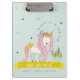 Whimsical Magical Unicorn Pink Aquamarin Aqua Prin Klemmbrett