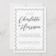 Ein einfaches handgeschriebenes Skript moderne minimalistische schwarz-weiße Typografie Hochzeitseinladung, mit einem skurrilen Flügelrahmen. Erhältlich in Print, als digitaler Download, oder beides.