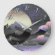 Whimsical Moon and Mountains Abstract Art Große Wanduhr