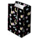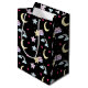 Whimsical Moon, Stars und Wolkenmuster auf schwarz Mittlere Geschenktüte