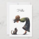 Whimsical Niedlich Cat and Lady Hello Flat Karte