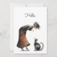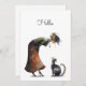 Whimsical Niedlich Cat and Lady Hello Flat Karte