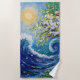Make waves at the beach with this spectacular towel featuring a swirling ocean wave and a blooming floral tree. Ideal for anyone who loves art, surf, and sunshine. Celebrate the power and beauty of nature with this breathtaking artwork featuring a swirling ocean wave merging into a flowering tree under a glowing sun. Inspired by impressionist painting, this vivid design bursts with blooming flowers, vibrant foliage, and dynamic movement, making it perfect for nature lovers, art enthusiasts, and dreamers. Ideal for gifts, decor, and personal expression on a variety of customizable products.