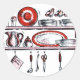 Antike Landküche in Schwarz und Weiß mit Teilen Rot bringen eine Person zurück in die gute alte Zeit. Oma's Küchenschelf sah so aus: hängender Kaffee und Teetassen, Teller, passende Geschirr, Schüsseln, ein Krug für eiskalten süßen Tee, hängende Küchenutensilien und ihr eigenes Kochbuch voller Rezepte. Das gesamte Set ist auf Holzregalen mit roten Farben aufgetragen. Diese Vintage Kunst ist eine einfache Schwarzweiß-Illustration mit Rot zum Stanzen. Diese skurrile Kunst ist die perfekte Idee für viele Ferien und besondere Anlässe, wie zum Beispiel Muttertag, Geburtstag, wohltuende Wünsche, Denken an Sie, und mehr. Koch, Bäcker, Köche, Ehefrauen, Mütter werden das alle schätzen.