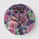 Whimsical Owl auf Blütenzweig Rosa Blau Runde Wanduhr