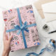 Whimsical Paris Doodles Pink Wrapping Paper Geschenkpapier