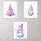Dieses skurrile Trio von Wandkunstdrucken zeigt einen Weihnachtsbaum, einen Gnome im Wintergarb und einen lustigen Schneemann, alles in zauberhaften Pastelltönen. Digitale Kunst wurde mit AI-generierender Software geschaffen. Niedlich für Kinderzimmer, Kinderzimmer und mehr!