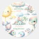 Whimsical Pastel Hatching Bald Dino Baby Dusche Runder Aufkleber