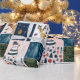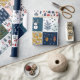 Celebrate the magic of the season with this Whimsical Patchwork Christmas Wrapping Paper, featuring a charming mix of festive illustrations in cozy colors. Snowmen, reindeer, ornaments, and winter foliage come together in a quilt-inspired layout with hues of navy blue, blush pink, mustard, and cream.