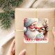 Whimsical Personalized Santa and Rudolph Holiday Quadratischer Aufkleber