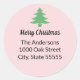 Whimsical Pink Green Christmas Tree Rücksendeadres Runder Aufkleber