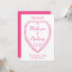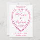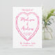 Set the tone for your celebration with this pink heart wedding invitation, featuring handwritten pink script and a hand-drawn heart on a white background. The contrast between the vibrant pink lettering and white space creates a romantic yet modern look that feels playful, fresh, and timeless. The couple’s names are displayed at the center of the heart, with the wedding details arranged below in a balanced, easy-to-read layout. Suitable for year-round weddings and a variety of styles, this invitation can be personalized with your names, wedding date, and venue to create wedding stationery that feels warm, joyful, and beautifully designed.