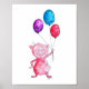 Das ist ein originelles gemischtes Mediagemälde eines skurrilen rosa Schweins mit drei farbigen Ballons.
