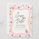 A charming save the date design featuring a soft pink palette with playful illustrations of strawberries, wine glasses, champagne bottles, hearts, and cupcakes. The elegant hand-lettered typography blends romance with a fun, modern vibe, making it ideal for couples who want a joyful and stylish wedding announcement. Perfect for spring or summer weddings, bridal celebrations, and romantic themes with a lighthearted twist.