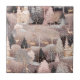 A ceramic tile illustrated winter landscape in a dreamy pink palette, featuring rolling blush-toned snow hills, elegant deer with golden antlers, and a mix of pink deciduous trees and deep blue evergreens. White-and-gold fantasy towers rise in the distance, adding a magical storybook feel. Falling snowflakes, snowy shrubs, and soft color contrasts create a modern, whimsical winter aesthetic
