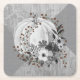 Whimsical Pumpkin Florals & Red Berries Grayscale Square Paper Untersetzer. Schöner künstlerischer Kürbis mit hübschen Blume in Graustufen und kontrastierenden, tiefroten Beerenweinen, alles auf einem abstrakten modernen grauen, blumengeometrischen Hintergrund.