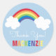 Dieser Geburtstagsaufkleber ist die perfekte Touch für Ihre RegenbogenGeburtstagsparty. Bringen Sie Ihre Goodies-Taschen an, um das Regenbogenthema fortzusetzen. Mit einem illustrierten Regenbogen mit zwei Wolken auf hellblauem Hintergrund und dem Geburtsname des Kindes in Regenbogenbriefen. Bestellen Sie die gesamte Koordinationskollektion für alle Ihre Regenbogen-Party.