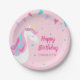 Whimsical Rainbow Unicorn Pink Happy Birthday Pappteller