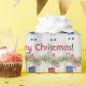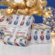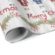 Weiße Nussknacker in Rot und Blau stehen vor einem rustikalen, hellgrauen Bretterboden. Ein Land mit Kiefernstrassen und roten Beeren ist über ihnen drapiert und es sagt Frohe Weihnachten unter den Nussknackern. Dieses festliche Weihnachtspapier wird unter deinem Baum so hübsch aussehen!