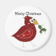 Whimsical Red Bird with Sprig of Holly Magnet