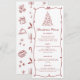 Fügen Sie Ihrem Urlaubsessen eine festliche und künstlerische Touch mit diesem wunderbar illustrierten Weihnachtsmenü hinzu. Mit einem von Hand gezeichnet Weihnachtsbaum aus Bögen, einer gewellten roten Grenze und eleganter Typografie verbindet dieses Design Lustigkeit und Tradition perfekt. Die in Rot gestrichenen Pop mit einem weißen Hintergrund laden zu gemütlichen Zuhause-Dinners oder stilvollen Ansammlungen ein. Ein subtiles Weihnachtsmuster schmückt den Rücken - leicht zu entfernen, wenn man ein einfacheres Aussehen bevorzugt. Alle Texte und Farben können auf Ihren Anzug angepasst werden. Ideal für Weihnachten, Familienfeiern oder Festessen, wo Details wichtig sind.