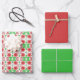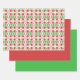 Gift Giving Package Wrapping Paper set of 3 sheets printed with Whimsical Red Flowers Green Leaves On White Art fun digital graphic Illustration design with soft translucent and solid colors by TheFabricSeal print on demand shop at Zazzle.com #ZazzleMade ©️Original. https://www.zazzle.com/store/thefabricseal