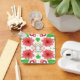 Keychain key ring and key fob holder printed with Whimsical Red Flowers Green Leaves On White Art fun digital graphic Illustration design with soft translucent and solid colors by TheFabricSeal print on demand shop at Zazzle.com #ZazzleMade ©️Original. https://www.zazzle.com/store/thefabricseal