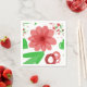 Paper Napkins Set printed with Whimsical Red Flowers Green Leaves On White Art fun digital graphic Illustration design with soft translucent and solid colors by TheFabricSeal print on demand shop at Zazzle.com #ZazzleMade ©️Original. https://www.zazzle.com/store/thefabricseal