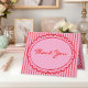 This whimsical thank you card features a juicy red watercolor scalloped oval frame against a fun red and pink striped background. Perfect for a wedding with a preppy or Valentines aesthetic, this charming design provides a sweet, hand-painted look for your special celebration. Created by Simply Farmhouse Press.