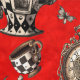 Whimsical AI generierte digitale Kunstmuster Features Wonderland inspiriert Schachbrettlehren und Teekanne zusammen mit Vintagen Taschenuhren auf dramatischen roten Hintergrund. Ideal für akzentuierte Wände und eine Vielzahl anderer DIY Wohngestaltung Projekte!