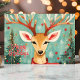Feiern Sie die Urlaubstage mit dieser charmanten Rentierkarte, die mit einem skurrilen Rentier geschmückt ist, mit festlichen Ornamenten und umgeben von Weihnachtsbäumen und Schneeflocken. Das handbemalte Design schafft ein einzigartiges und gemütliches Ambiente, das sich perfekt eignet, um herzliche Urlaubswünsche zu erfüllen. Ideal, um in dieser Weihnachtszeit Freude und Wärme zu vermitteln.