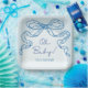 Whimsical Retro Blue Hand Drawn Bow Baby Dusche Pappteller