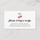 Diese Retro-Brautparty-Rezepte verlangen Gehäuse-Karten sind mit einer niedlichen, skurrile roten Kirschfrucht Aquarellbild mit grünen Blätter. Elegante Vintage Schrift sagt "Bitte bringen Sie ein Rezept" für ein schick und schlichtes Retro-Kirschen-Design.