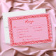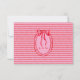 Diese wunderliche Hochzeitsantwortkarte mit Abendessen-Auswahl zeigt einen roten, spielerischen, geschweiften Rechteckrahmen vor einem lustigen rosa und rot gestreiften Hintergrund. Ihre ersten Initialen stehen im Mittelpunkt auf der Rückseite. Perfekt für eine Hochzeit mit einem präppy oder Valentins-Ästhetik, bietet dieses charmante Design einen süßen, handgemalten Look für Ihre besondere Feier. Erstellt von Simply Farmhouse Press.