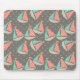 Whimsical Gemustert Sailboats Produkte wie Trockenrasenbretter, Visitenkarten-Hüllen, Tischorganisatoren, Lautsprecher, Bindemittel, Porto-Briefmarke, Mousepads und mehr Features Segelboote mit Zickzack Streifen und Polka Punkte auf einem grauen Polka gepunkteten Hintergrund.