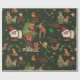 Whimsical Santa Elf & Friends Christmas Green Geschenkpapier