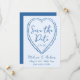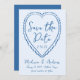Feiern Sie Ihre anstehende Hochzeit mit dieser charmanten und skurrilen Save the Date-Karte, die "Save the Date" in handgeschriebenem blauen Drehbuch, umgeben von einem handgezeichnet Herz auf einem sanften hellblauen Hintergrund. Dieses Retro-inspirierte Design ist zugleich einzigartig und elegant und bietet eine angenehme Art, Ihren besonderen Tag zu verkünden. Passen Sie die Karte mit Ihren Namen, dem Hochzeitstag und dem Ort an, um einen personalisierten Sake zu schaffen, der Ihnen den Ton für Ihre unvergessliche Feier Set.
