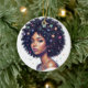 Whimsical Schwarze Frau mit Blumen geschmücktem Af Keramik Ornament