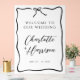 Ein einfaches handgeschriebenes, modernes, minimalistisches, schwarz-weißes Zeichen für Hochzeitsempfang mit einem gewellten Band-Rahmen mit einem kleinen Bogen in handgezeichnetem Stil. Informeller whimsical coquette Stil. Einfache moderne Laune. Für einen informellen, spielerischeren Hochzeitsstil.