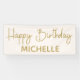 Cream/white und gold "Happy Geburtstag" Party-Banner mit dem Namen des Ehrengast in einem skurrilen Skript-Schriftart angepasst.