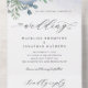 Design-Funktion staubblaue Rose Aquarell und Eukalyptus-Blätter mit elegantem Skript.