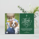 Vielen Dank an Familie und Freunde mit dieser eleganten und modernen ersten Kommunion danke Ihnen eine Flachkarte. Es enthält ein skurriles Skript auf einem grünen Hintergrund und Quarrefolienmuster. Dieses Foto Dankeschön-Karte wird auch perfekt für Taufe und Christening Dankeschön Karte.