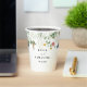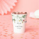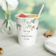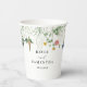 Secret Garden Wedding ist ein skurriles, modernes Hochzeitspapier-Cup-Design mit Wildblumen und einem Vogel auf weißem Hintergrund.